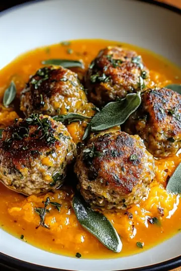 Savory Turkey Meatballs in Pumpkin Sage Sauce Delight